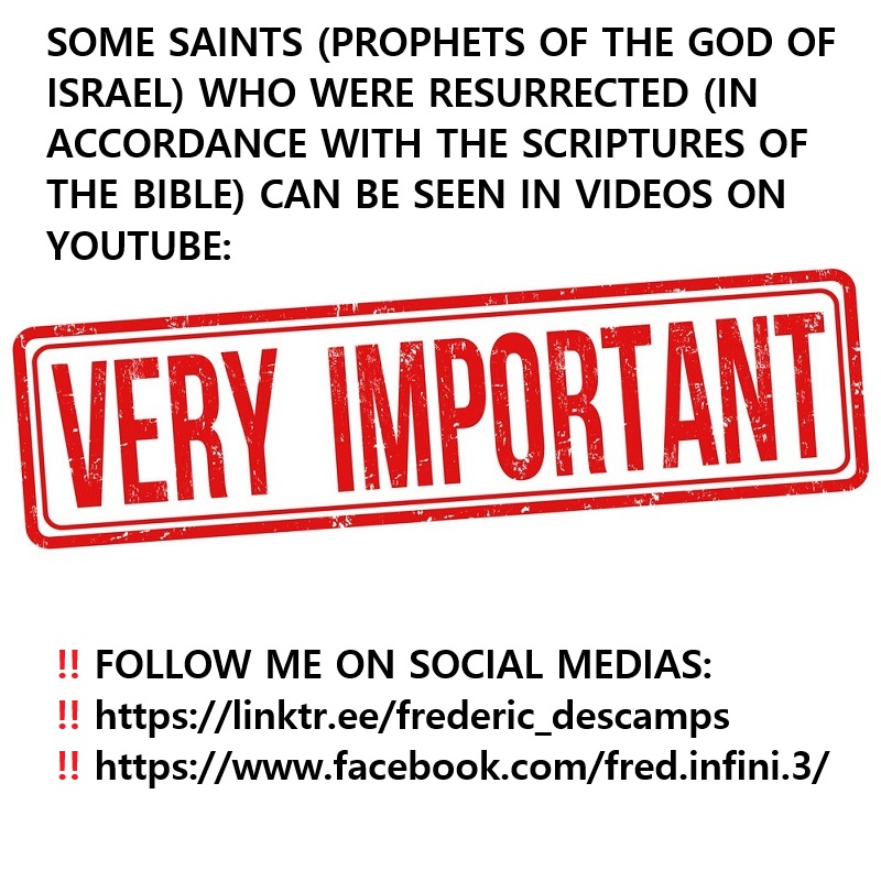 ‼️‼️ ‼️ 2024 06 05 ‼️ VERY IMPORTANT : ‼️‼️ SOME SAINTS (PROPHETS OF THE GOD OF ISRAEL) WHO WERE RESURRECTED (IN ACCORDANCE WITH THE SCRIPTURES OF THE BIBLE) CAN BE SEEN IN VIDEOS ON YOUTUBE:
