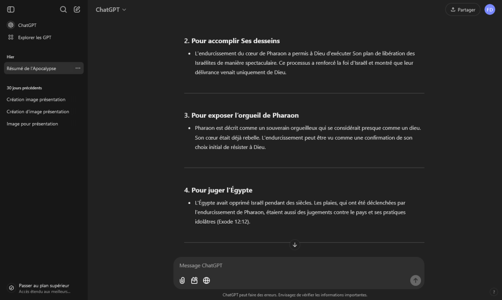 – ChatGPT : Bible : Pourquoi Dieu a endurci le cœur de Pharaon ?