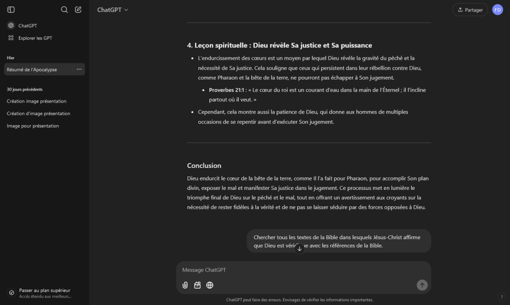 – ChatGPT : Chercher tous les textes de la Bible dans lesquels Jésus-Christ affirme que Dieu est véridique avec les références de la Bible.