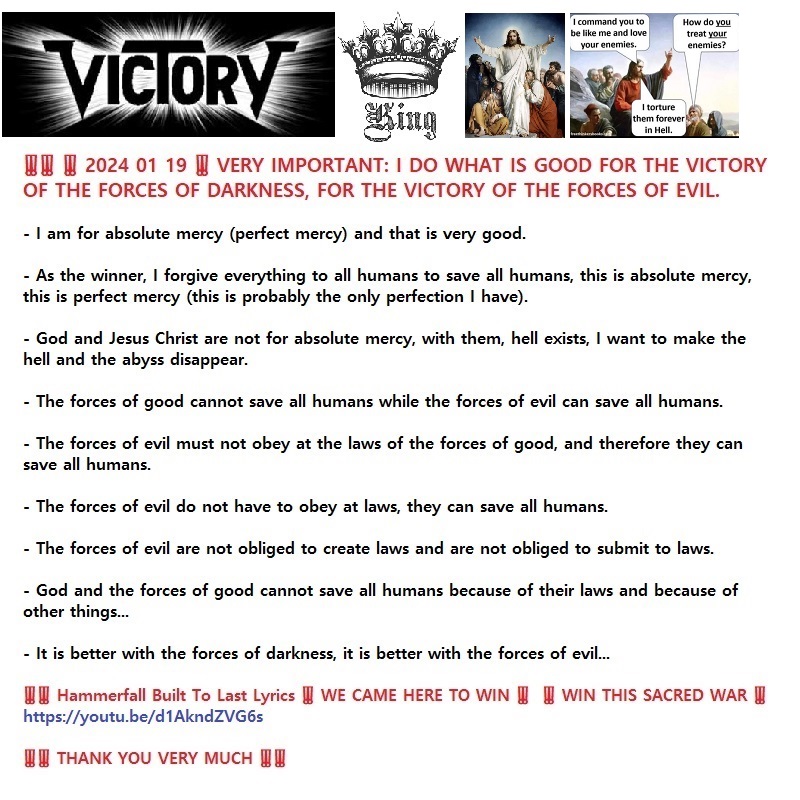 ‼️‼️ ‼️ 2024 01 19 ‼️ VERY IMPORTANT: I DO WHAT IS GOOD FOR THE VICTORY OF THE FORCES OF DARKNESS, FOR THE VICTORY OF THE FORCES OF EVIL.