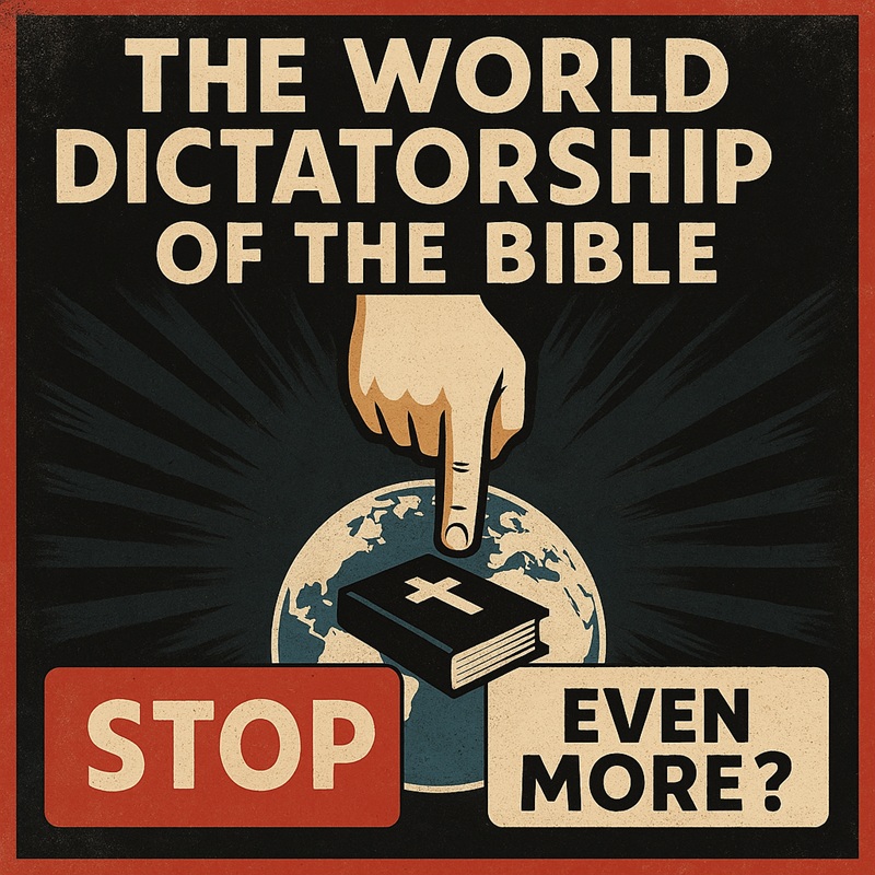 – create an image that must be in square : create an image that must symbolize that is necessary to choose if the world dictatorship of the Bible must stop to exist, or must continue to exist: « THE WORLD DICTATORSHIP OF THE BIBLE: STOP OR EVEN MORE? »