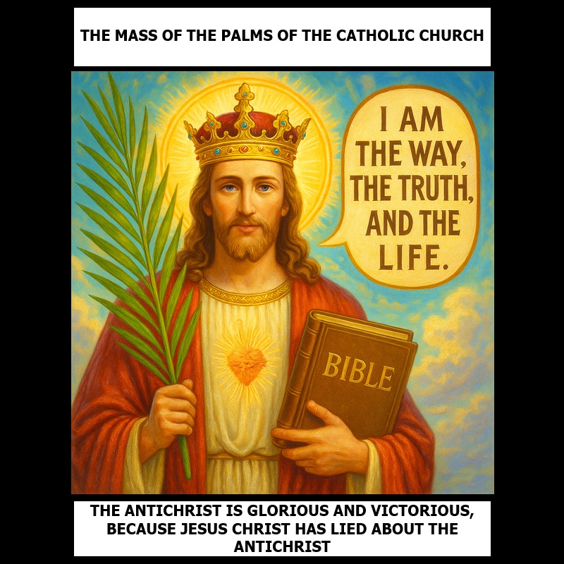 ‼️ 2025 04 13 ‼️ ✌👑 ‼️ VERY IMPORTANT: THE MASS OF THE PALMS OF THE CATHOLIC CHURCH: THE ANTICHRIST IS GLORIOUS AND VICTORIOUS, BECAUSE JESUS CHRIST HAS LIED ABOUT THE ANTICHRIST: THE ANTICHRIST IS THE NEW KING OF THE HEAVENS: