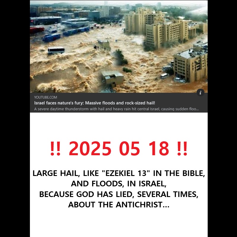 ‼️ 2025 05 19 ‼️ ✌👑 ‼️ VERY IMPORTANT: LARGE HAIL, LIKE « EZEKIEL 13 » IN THE BIBLE, AND FLOODS, IN ISRAEL, BECAUSE GOD HAS LIED, SEVERAL TIMES, ABOUT THE ANTICHRIST…