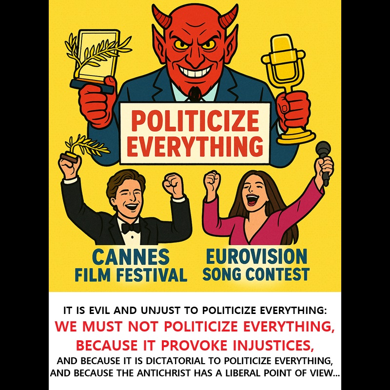 ‼️‼️ ‼️ 2025 05 25 ‼️ ✌👑 ‼️ TRÈS IMPORTANT : L’ANTICHRIST, QUI EST LE ROI, A DÉCIDÉ À PROPOS DES CONCOURS, ET DES SPORTS, ET DE TOUT CE QUI EST ARTISTIQUE : IL EST MAL ET INJUSTE DE TOUT POLITISER : NOUS NE DEVONS PAS TOUT POLITISER, PARCE QUE CELA PROVOQUE DES INJUSTICES, ET PARCE QU’IL EST DICTATORIAL DE TOUT POLITISER, ET PARCE QUE L’ANTICHRIST A UN POINT DE VUE LIBÉRAL… : CE QUI EST ARTISTIQUE, ET LE SPORT, NE DOIVENT PAS ÊTRE POLITISÉS, PARCE QUE, TOUT POLITISER, VA FALSIFIER LES RÉSULTATS DES CONCOURS : IL EST MAUVAIS DE TOUT POLITISER, PARCE QUE LA POLITIQUE VA TRUQUER LES RÉSULTATS DES CONCOURS, POUR DES OBJECTIFS POLITIQUES… :
