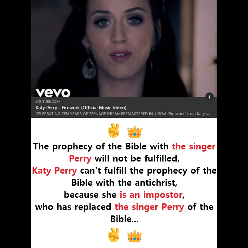 ‼️ The prophecy of the Bible with the singer Perry will not be fulfilled, and Katy Perry can’t fulfill this prophecy of the Bible with the antichrist, because she is an impostor, who has replaced the singer Perry of the Bible…