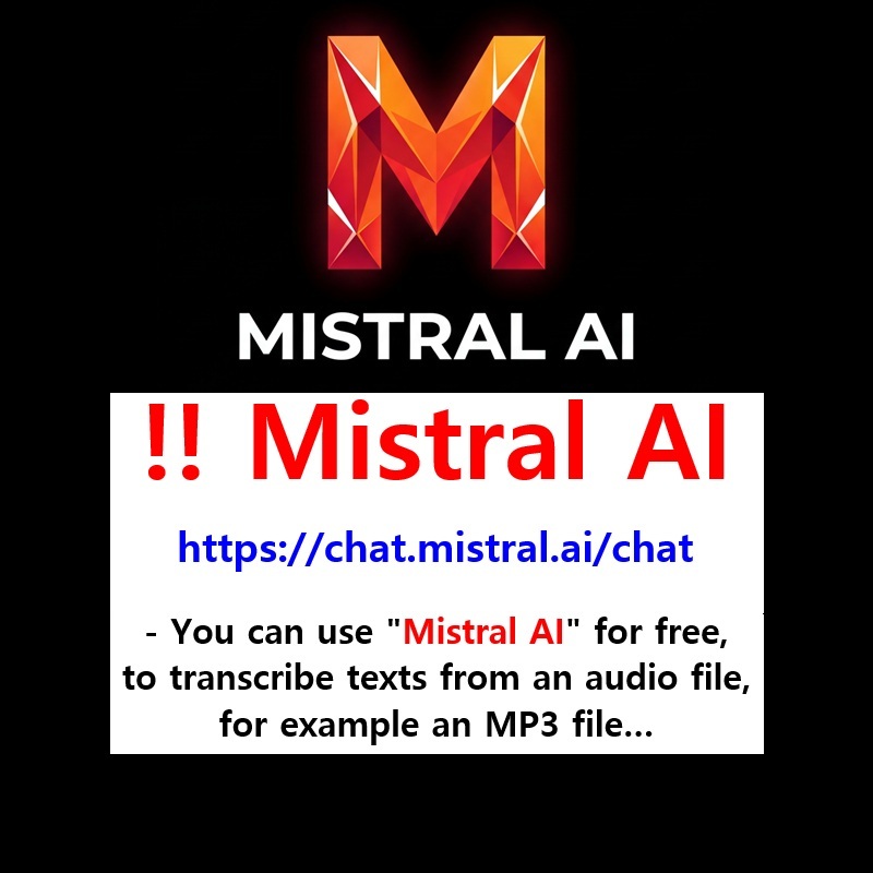 2026 03 31, You can use « Mistral AI » for free to transcribe texts from an audio file, for example an MP3 file, and that is what I did today. So thank you to « Mistral AI » for the transcription and thank you to « GAB AI » for the work on the text and the translation of the text…