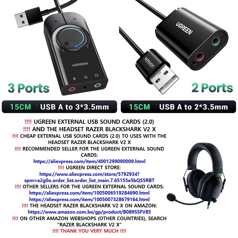 ‼️ 2024 11 13 ‼️ ✌👑 ‼️ UGREEN CHEAP EXTERNAL USB SOUND CARDS (2.0) TO USES WITH THE HEADSET RAZER BLACKSHARK V2 X:
