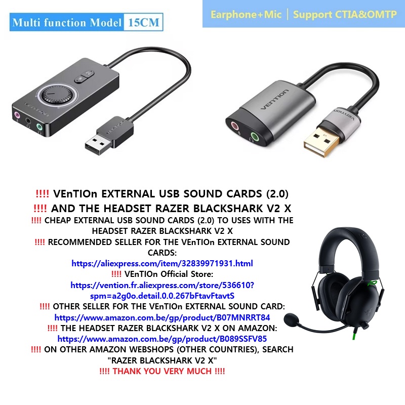‼️‼️ VEnTIOn CHEAP EXTERNAL USB SOUND CARDS (2.0) TO USES WITH THE HEADSET RAZER BLACKSHARK V2 X: